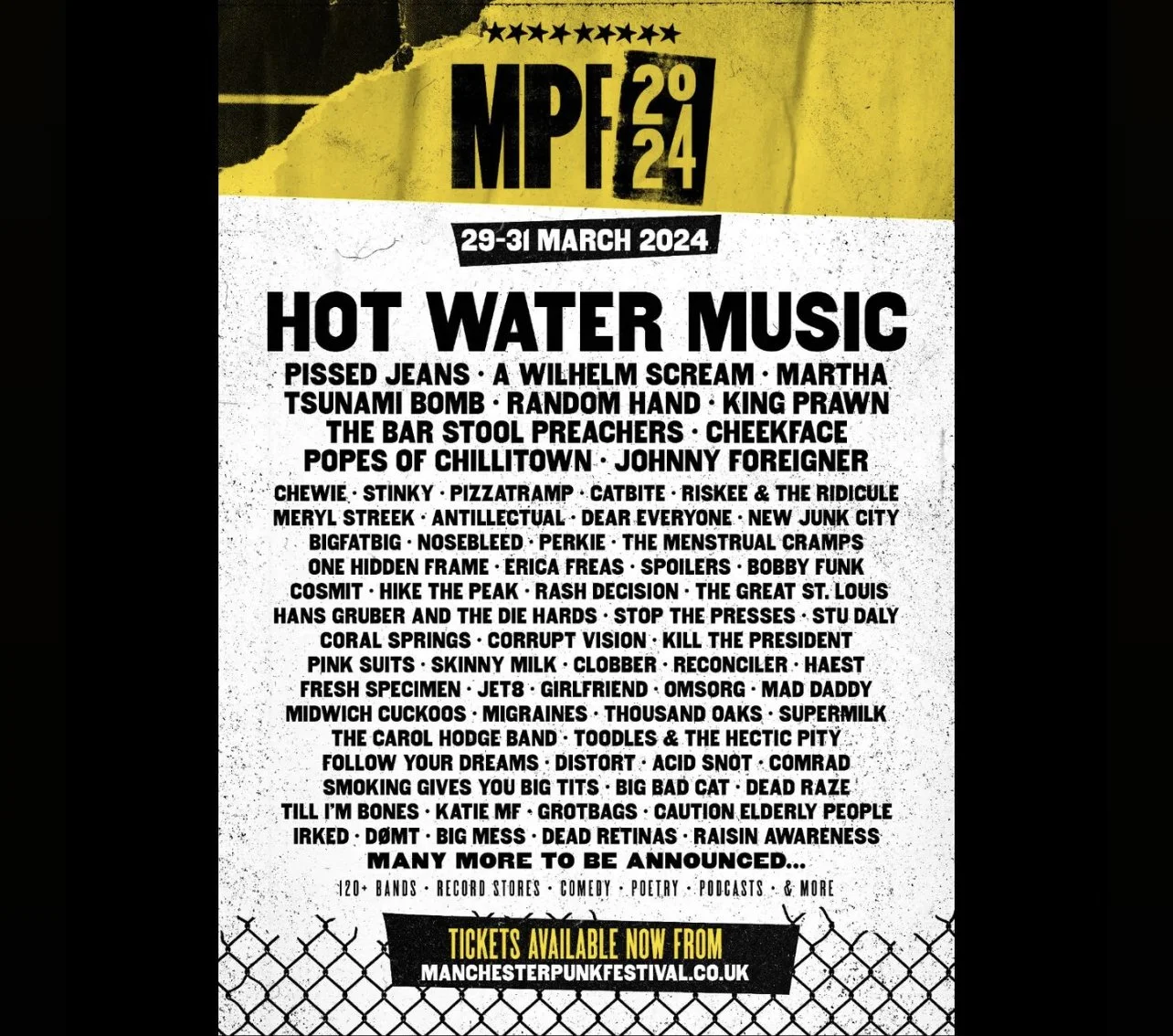 We are heading to Manchester Punk Festival the weekend of March 29th-31st, 2024, joining Hot Water Music, Pissed Jeans, A Whilhelm Scream, and more!